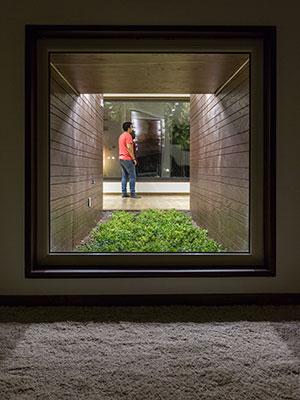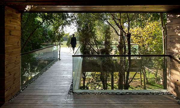 سلسله مراتب فضای نیمه باز داخلی ساختمان و فضای باز به گونه ای است که هر دو دید رو به دریاچه داخلی محوطه سایت را دارند و درختان وضع موجود، مابین این دو فضا نگه داشته شده تا دور تا دور این فضا ما بین درختان قرارگیرد و کیفیت نوری آنها بر اساس سایه های درختان و زوایای خورشید  در ساعات مختلف تغییر نماید. اتاق اصلی این ویلا نیز در لایه بعدی دید رو به دریاچه را دارد.