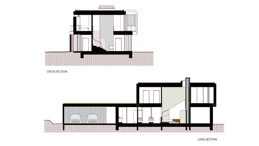 این ویلا دوبلکس تجهیزات لازم برای دسترسی ویلچیر و یک آسانسور مسکونی اختصاصی دارد. طبقه همکف یک نشیمن، آشپزخانه و اتاق خوابهایی دارد که به تراسهایی رو به طبیعت و فضای مرکزی و انبار مجاور پارکینگ متصل اند.